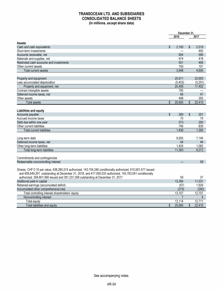 Agenda Item 1. Approval of the 2018 Annual Report, Including the Audited Consolidated Financial Statements of Transocean Ltd. for Fiscal Year 2018 and the Audited Statutory Financial Statements of Transocean Ltd. for Fiscal Year 2018