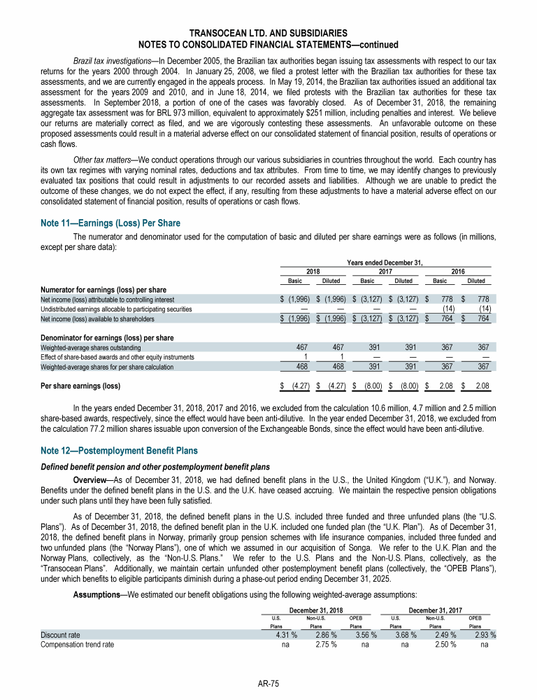 Agenda Item 1. Approval of the 2018 Annual Report, Including the Audited Consolidated Financial Statements of Transocean Ltd. for Fiscal Year 2018 and the Audited Statutory Financial Statements of Transocean Ltd. for Fiscal Year 2018