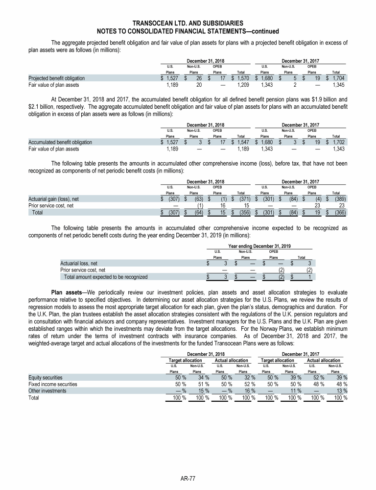 Agenda Item 1. Approval of the 2018 Annual Report, Including the Audited Consolidated Financial Statements of Transocean Ltd. for Fiscal Year 2018 and the Audited Statutory Financial Statements of Transocean Ltd. for Fiscal Year 2018
