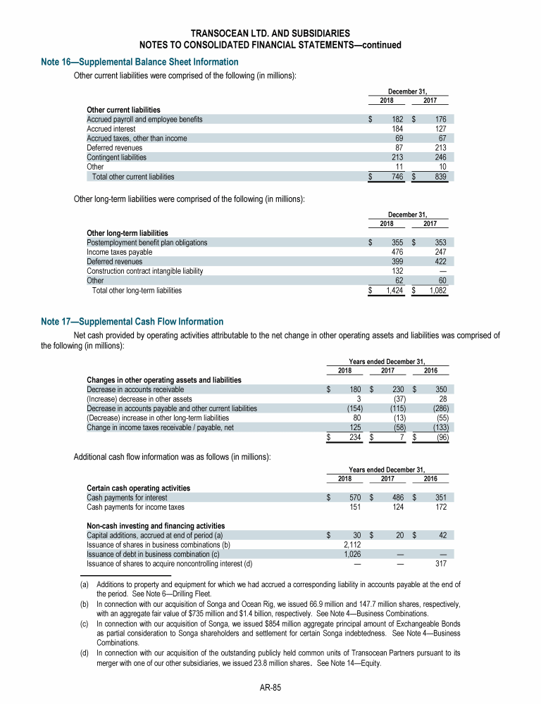 Agenda Item 1. Approval of the 2018 Annual Report, Including the Audited Consolidated Financial Statements of Transocean Ltd. for Fiscal Year 2018 and the Audited Statutory Financial Statements of Transocean Ltd. for Fiscal Year 2018