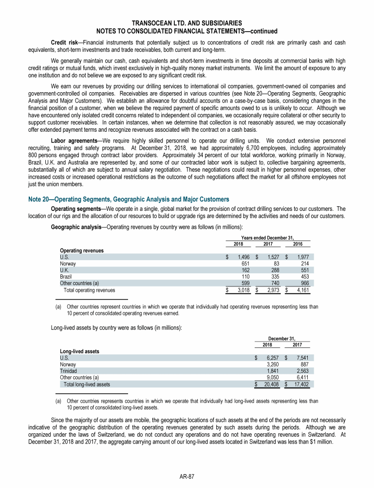 Agenda Item 1. Approval of the 2018 Annual Report, Including the Audited Consolidated Financial Statements of Transocean Ltd. for Fiscal Year 2018 and the Audited Statutory Financial Statements of Transocean Ltd. for Fiscal Year 2018