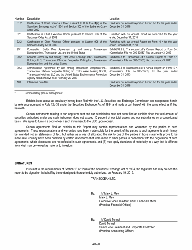 Agenda Item 1. Approval of the 2018 Annual Report, Including the Audited Consolidated Financial Statements of Transocean Ltd. for Fiscal Year 2018 and the Audited Statutory Financial Statements of Transocean Ltd. for Fiscal Year 2018