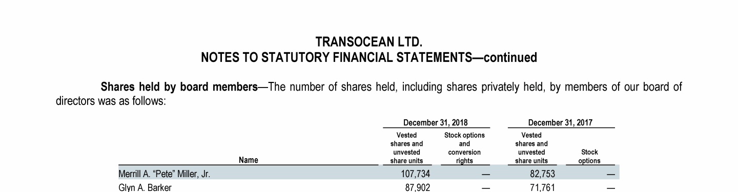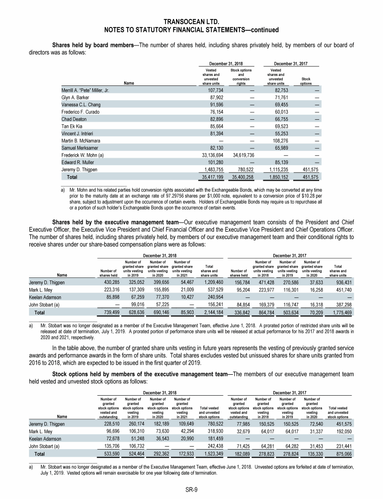 Agenda Item 1. Approval of the 2018 Annual Report, Including the Audited Consolidated Financial Statements of Transocean Ltd. for Fiscal Year 2018 and the Audited Statutory Financial Statements of Transocean Ltd. for Fiscal Year 2018