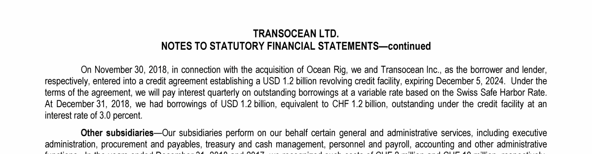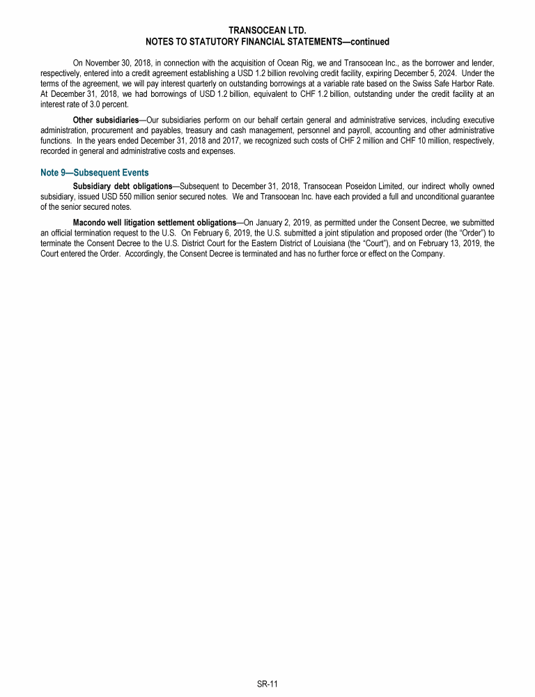 Agenda Item 1. Approval of the 2018 Annual Report, Including the Audited Consolidated Financial Statements of Transocean Ltd. for Fiscal Year 2018 and the Audited Statutory Financial Statements of Transocean Ltd. for Fiscal Year 2018