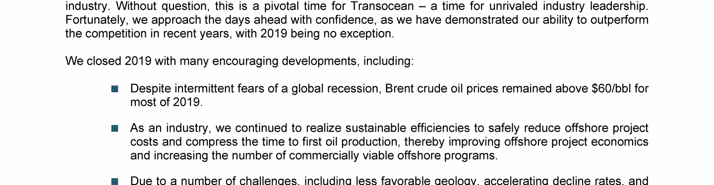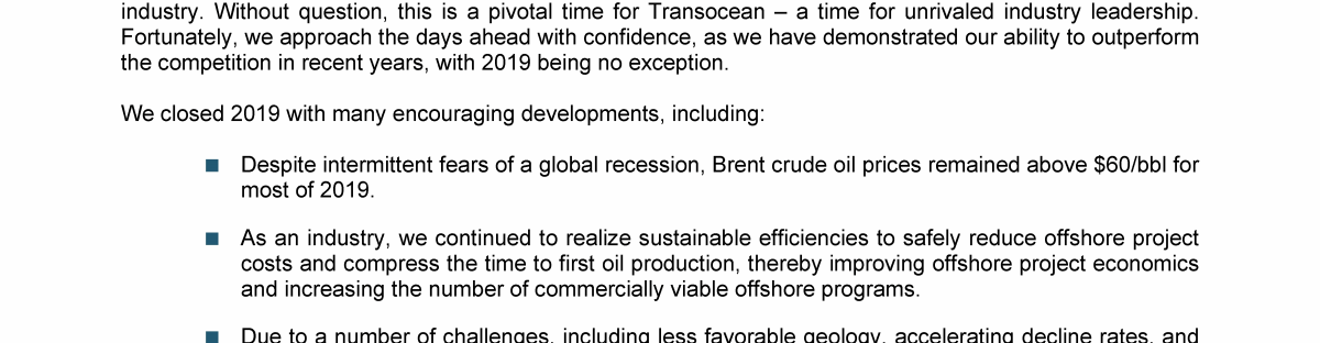 Agenda Item 1. Approval of the 2019 Annual Report, Including the Audited Consolidated Financial Statements of Transocean Ltd. for Fiscal Year 2019 and the Audited Statutory Financial Statements of Transocean Ltd. for Fiscal Year 2019
