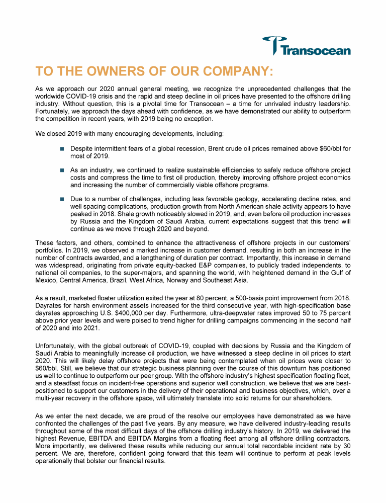 Invitation to 2020 Annual General Meeting of Transocean Ltd.