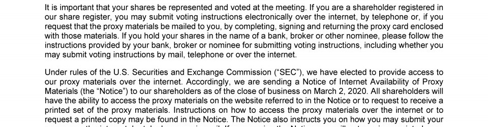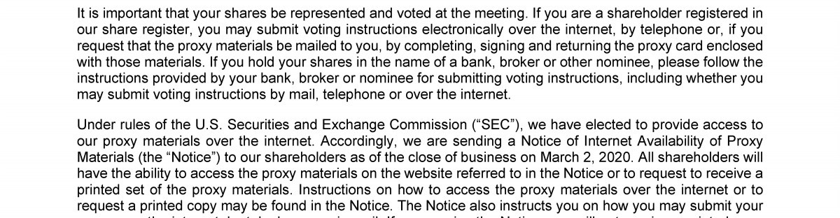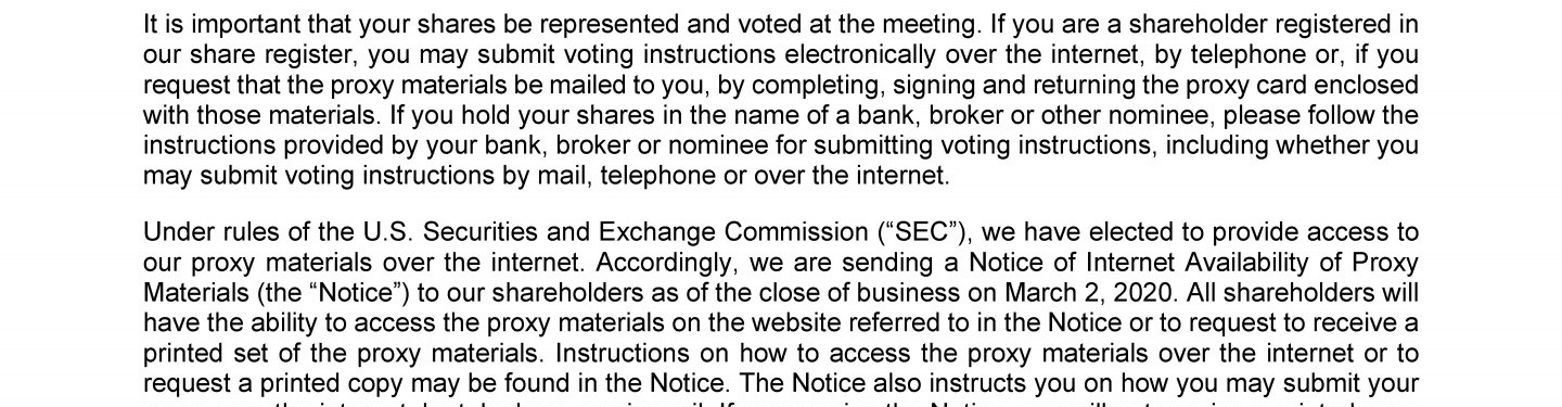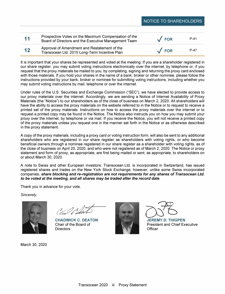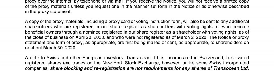 Invitation to 2020 Annual General Meeting of Transocean Ltd.