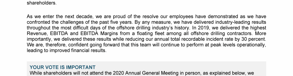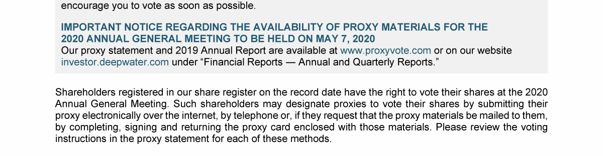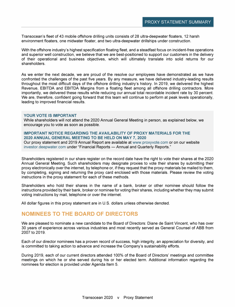 Invitation to 2020 Annual General Meeting of Transocean Ltd.