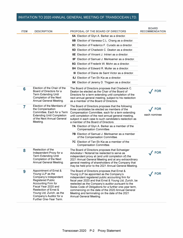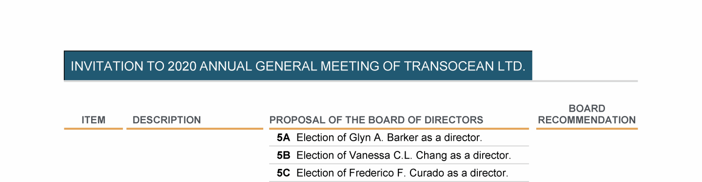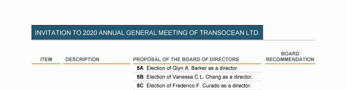 Invitation to 2020 Annual General Meeting of Transocean Ltd.