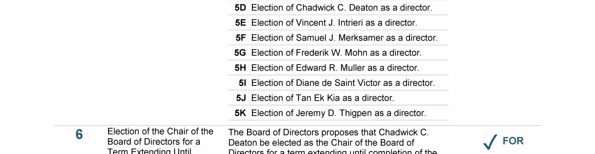 Agenda Item 6. Election of the Chair of the Board of Directors for a Term Extending Until Completion of the Next Annual General Meeting