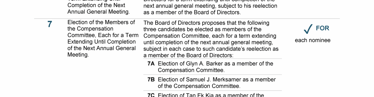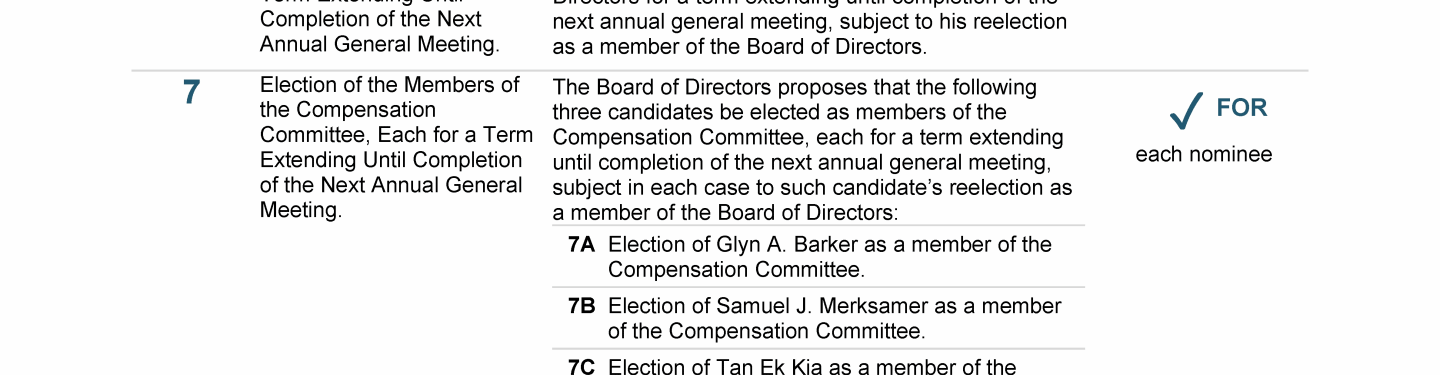 Agenda Item 7. Election of the Members of the Compensation Committee, Each for a Term Extending Until Completion of the Next Annual General Meeting