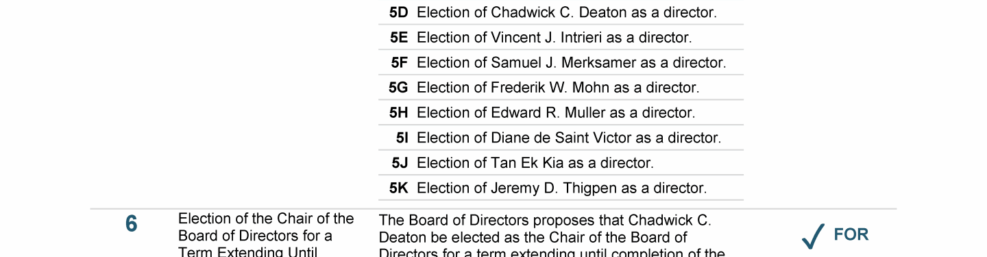 Agenda Item 5. Election of 11 Directors, Each for a Term Extending Until Completion of the Next Annual General Meeting