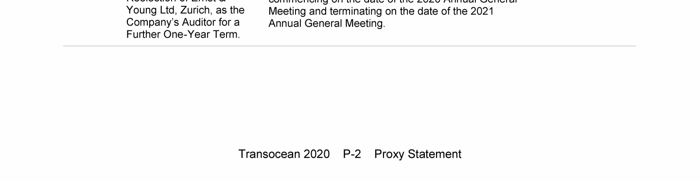 Agenda Item 1. Approval of the 2019 Annual Report, Including the Audited Consolidated Financial Statements of Transocean Ltd. for Fiscal Year 2019 and the Audited Statutory Financial Statements of Transocean Ltd. for Fiscal Year 2019