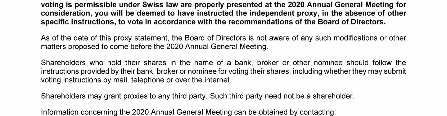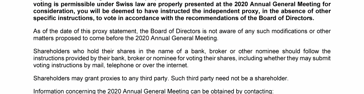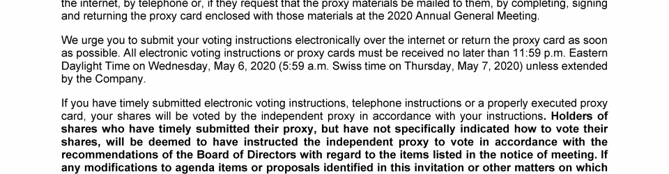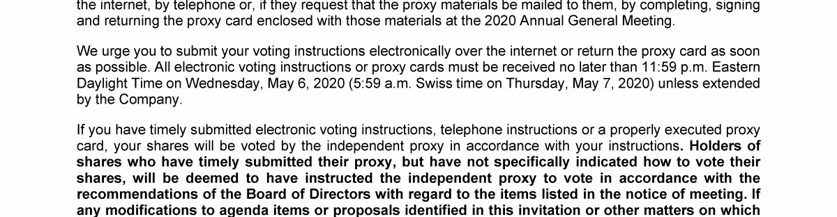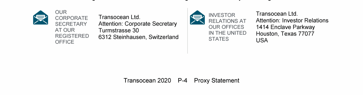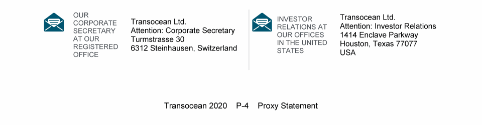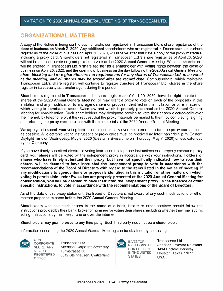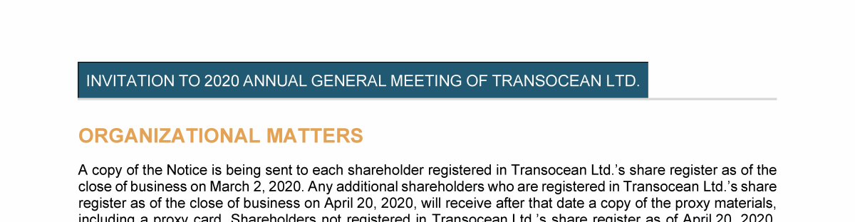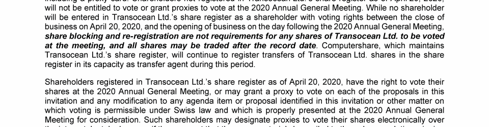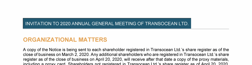 Invitation to 2020 Annual General Meeting of Transocean Ltd.
