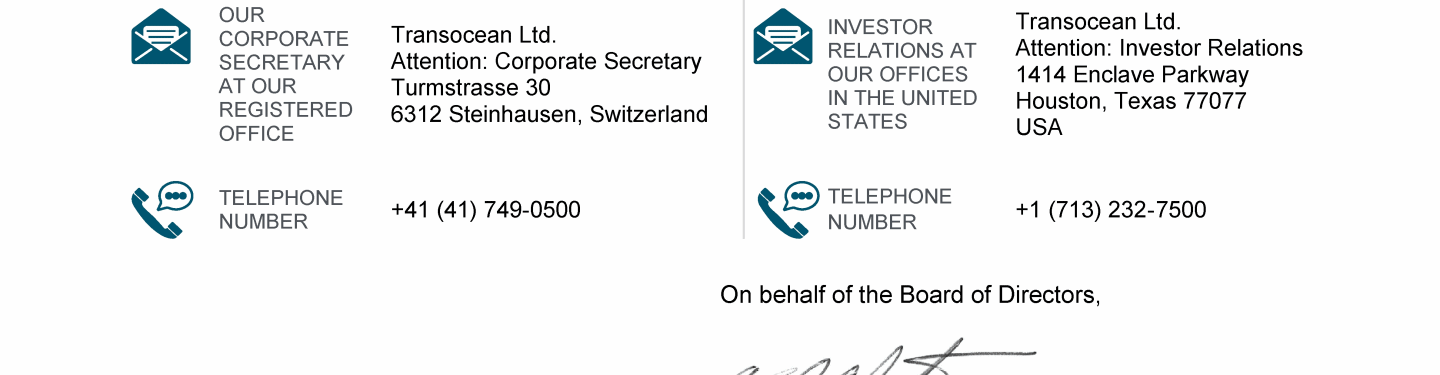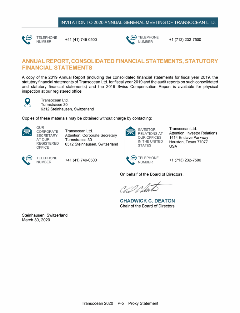 Invitation to 2020 Annual General Meeting of Transocean Ltd.