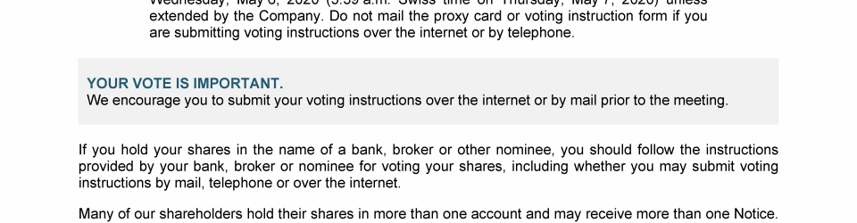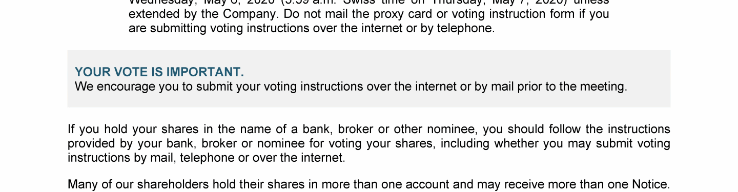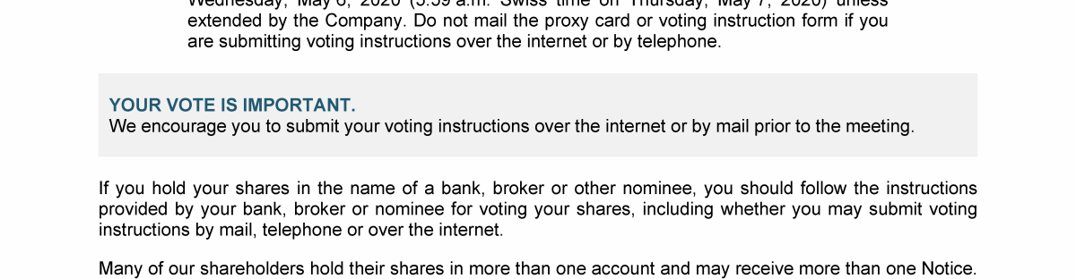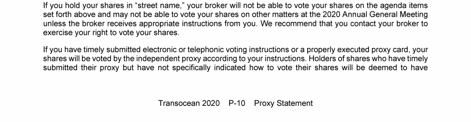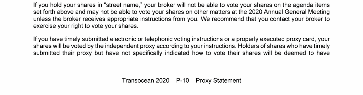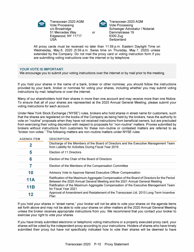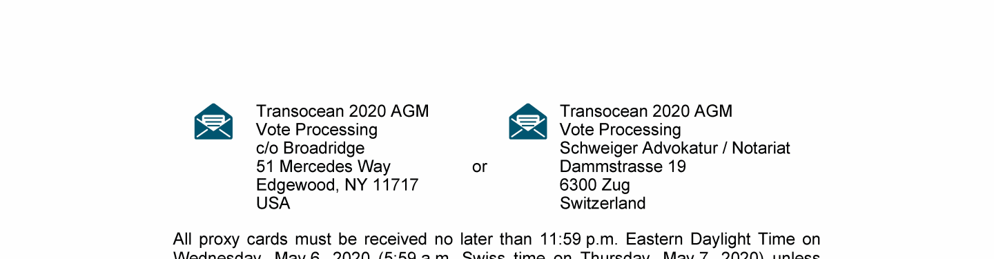 Invitation to 2020 Annual General Meeting of Transocean Ltd.