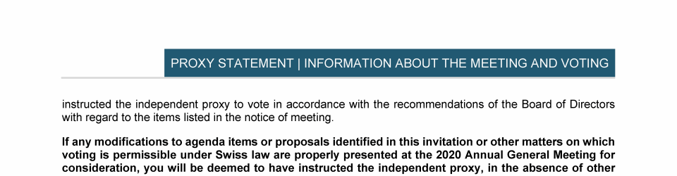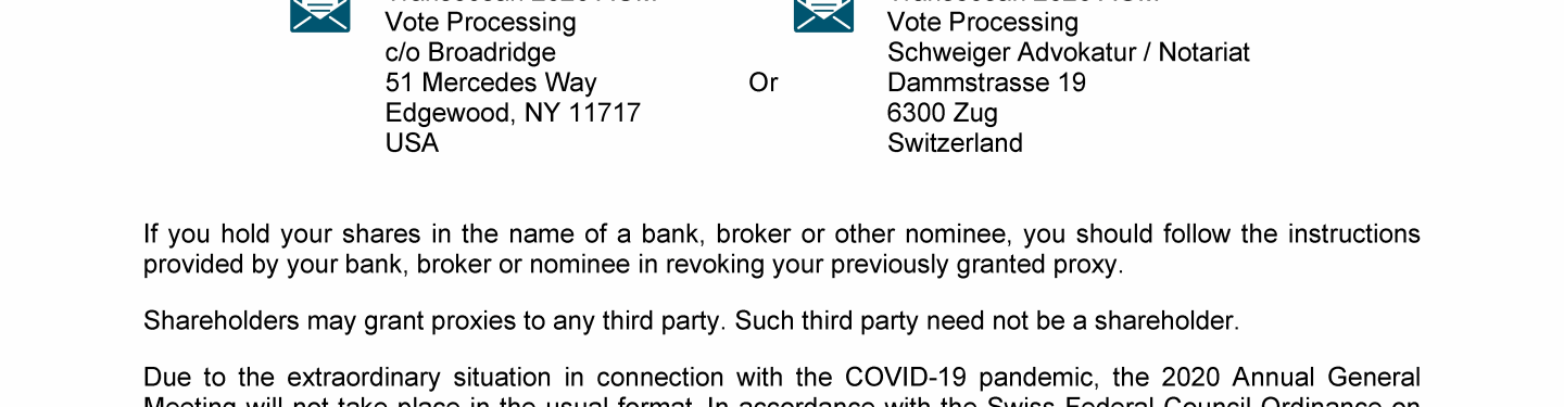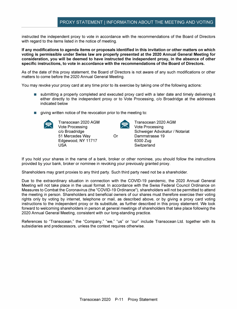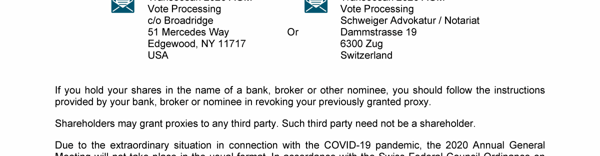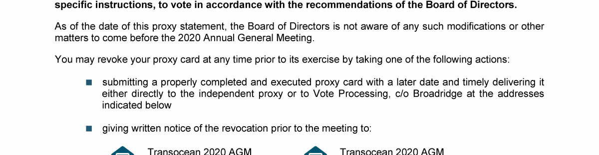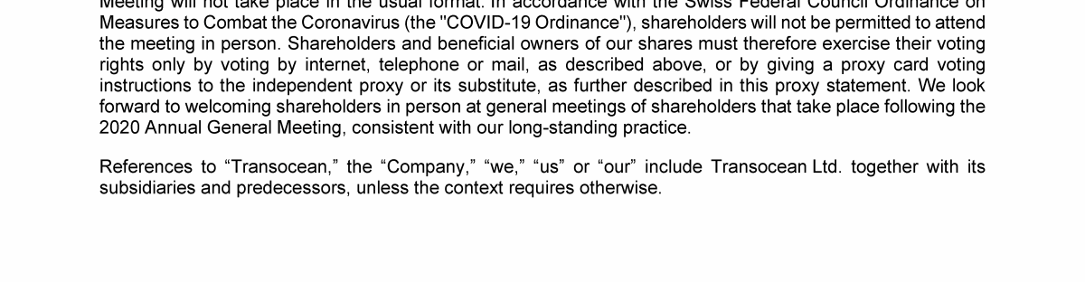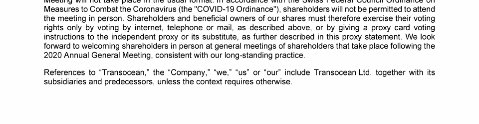 Invitation to 2020 Annual General Meeting of Transocean Ltd.