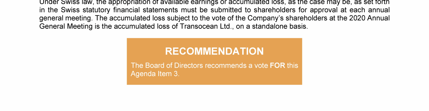 Agenda Item 1. Approval of the 2019 Annual Report, Including the Audited Consolidated Financial Statements of Transocean Ltd. for Fiscal Year 2019 and the Audited Statutory Financial Statements of Transocean Ltd. for Fiscal Year 2019