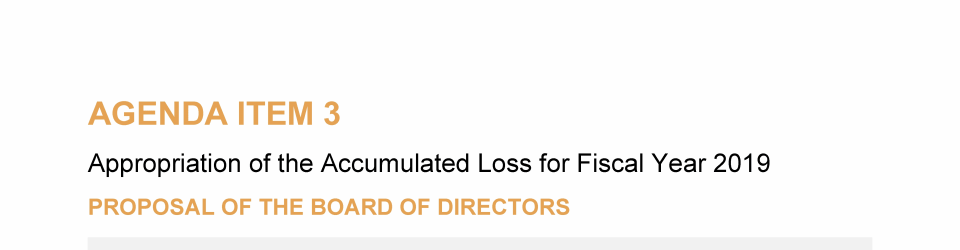 Agenda Item 3. Appropriation of Accumulated Loss for Fiscal Year 2019