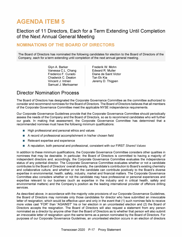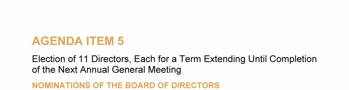 Agenda Item 5. Election of 11 Directors, Each for a Term Extending Until Completion of the Next Annual General Meeting