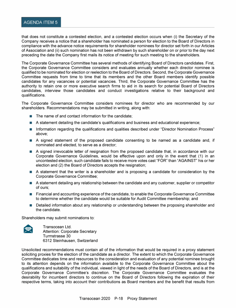 Invitation to 2020 Annual General Meeting of Transocean Ltd.