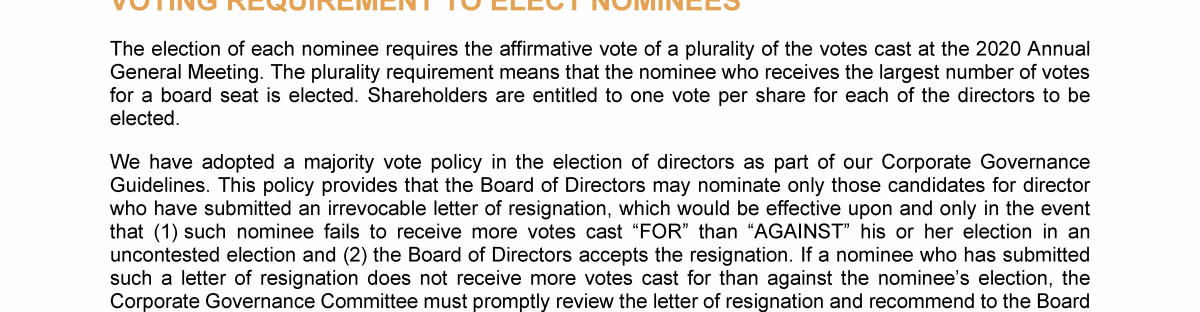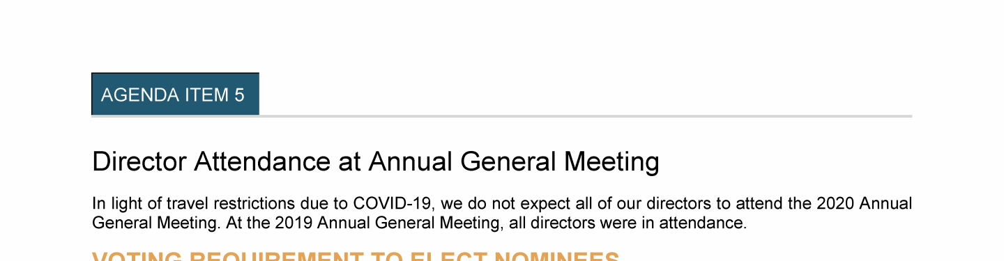 Agenda Item 1. Approval of the 2019 Annual Report, Including the Audited Consolidated Financial Statements of Transocean Ltd. for Fiscal Year 2019 and the Audited Statutory Financial Statements of Transocean Ltd. for Fiscal Year 2019