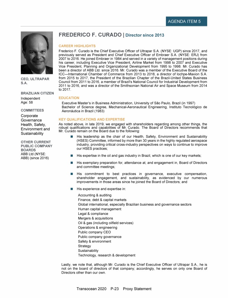 Agenda Item 1. Approval of the 2019 Annual Report, Including the Audited Consolidated Financial Statements of Transocean Ltd. for Fiscal Year 2019 and the Audited Statutory Financial Statements of Transocean Ltd. for Fiscal Year 2019