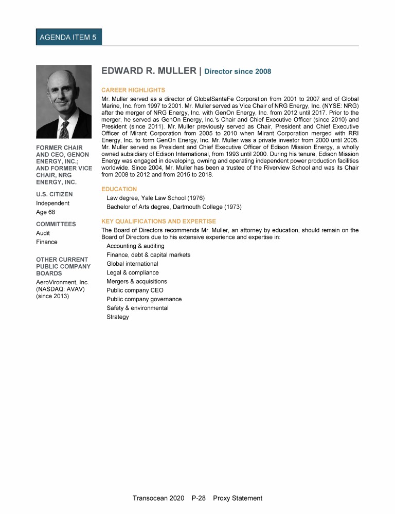 Agenda Item 1. Approval of the 2019 Annual Report, Including the Audited Consolidated Financial Statements of Transocean Ltd. for Fiscal Year 2019 and the Audited Statutory Financial Statements of Transocean Ltd. for Fiscal Year 2019