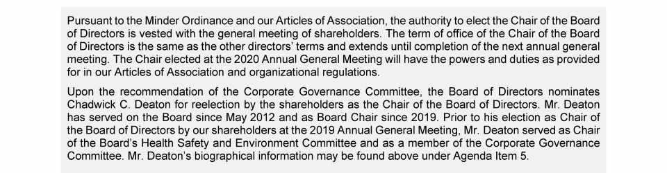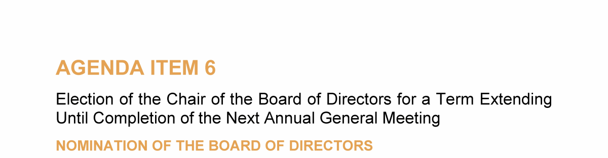 Agenda Item 6. Election of the Chair of the Board of Directors for a Term Extending Until Completion of the Next Annual General Meeting
