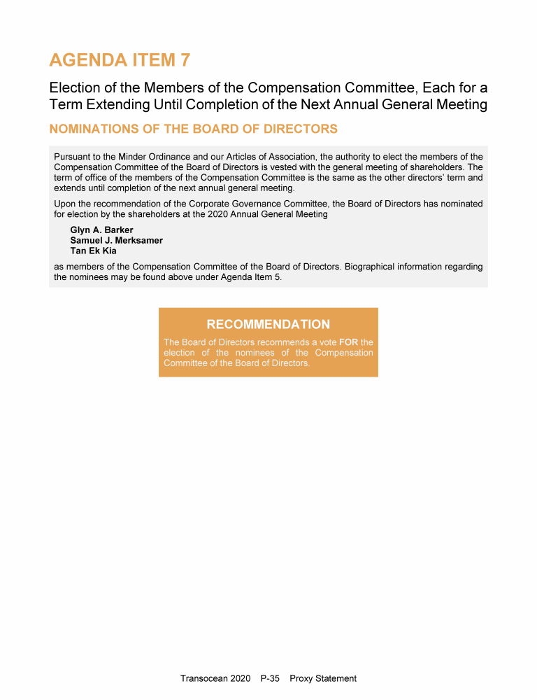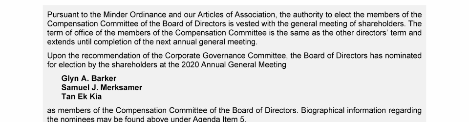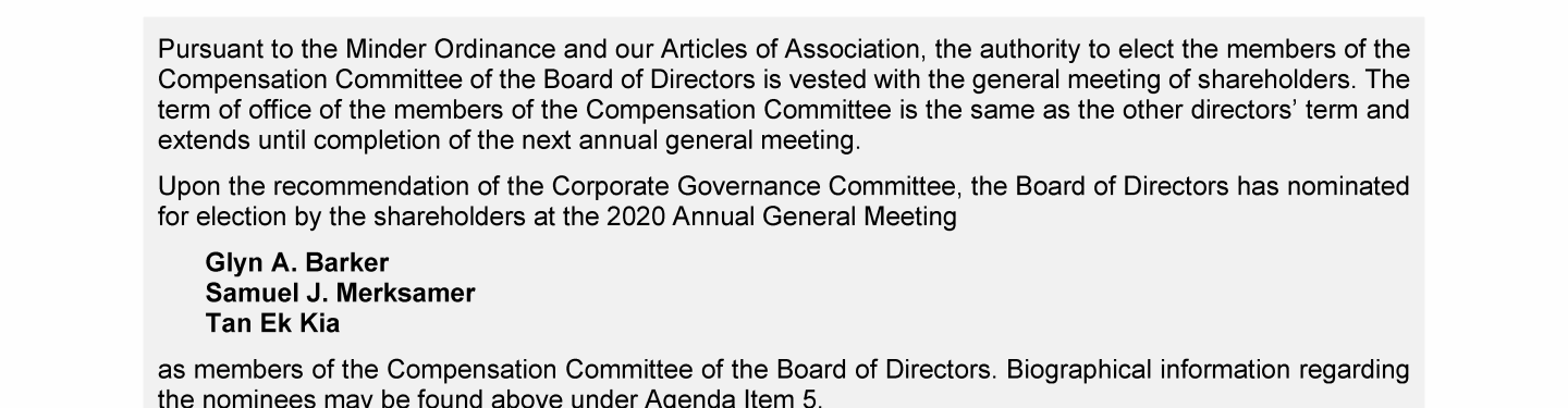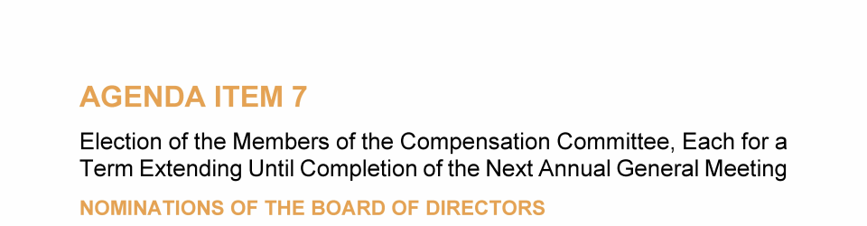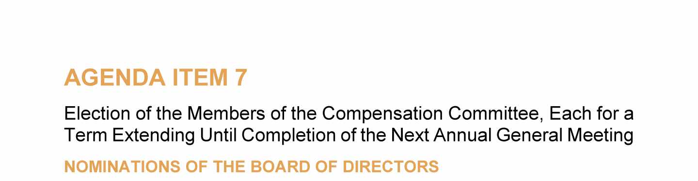 Agenda Item 7. Election of the Members of the Compensation Committee, Each for a Term Extending Until Completion of the Next Annual General Meeting