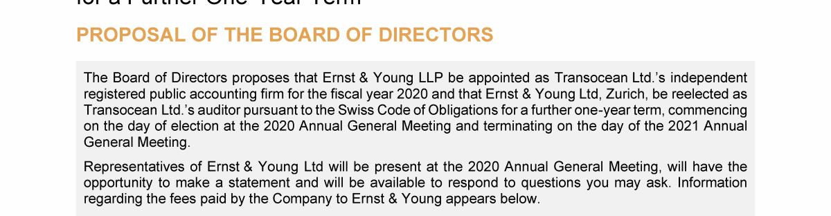Agenda Item 1. Approval of the 2019 Annual Report, Including the Audited Consolidated Financial Statements of Transocean Ltd. for Fiscal Year 2019 and the Audited Statutory Financial Statements of Transocean Ltd. for Fiscal Year 2019