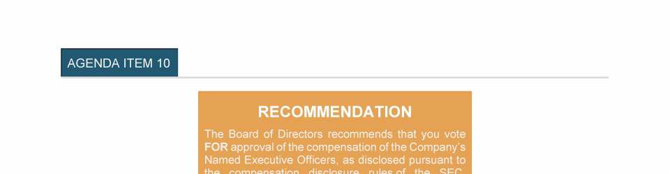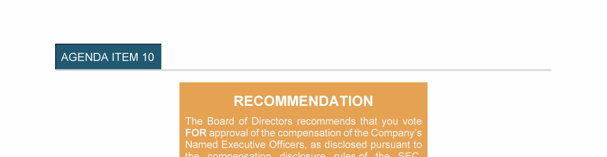 Agenda Item 10. Advisory Vote to Approve Named Executive Officer Compensation