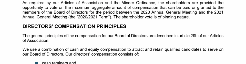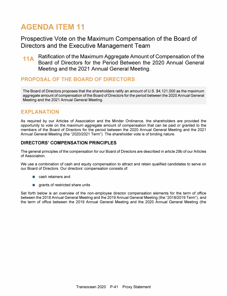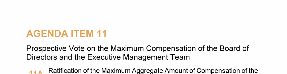 Agenda Item 11. Prospective Votes on the Maximum Compensation of the Board of Directors and the Executive Management Team