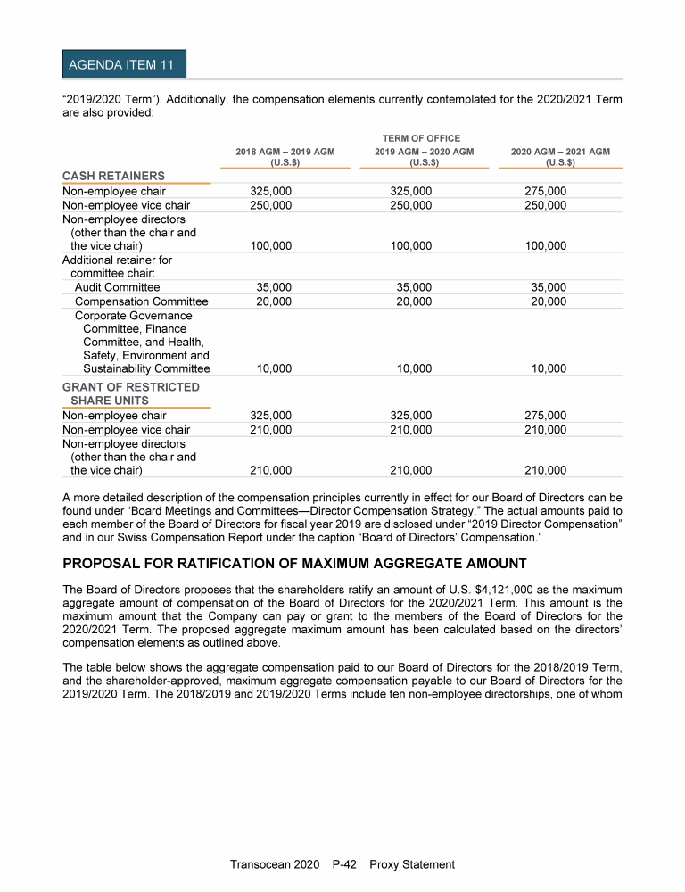 Agenda Item 1. Approval of the 2019 Annual Report, Including the Audited Consolidated Financial Statements of Transocean Ltd. for Fiscal Year 2019 and the Audited Statutory Financial Statements of Transocean Ltd. for Fiscal Year 2019