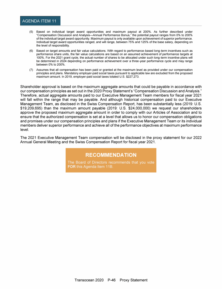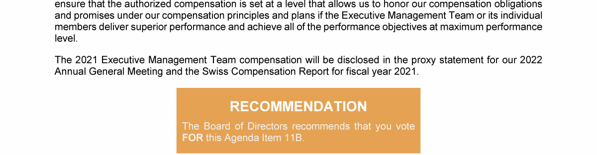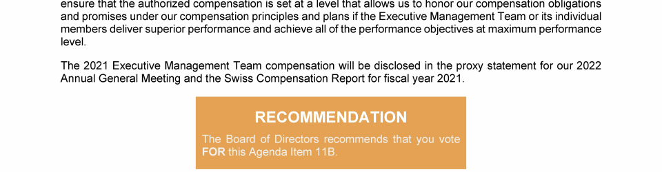 Agenda Item 11. Prospective Votes on the Maximum Compensation of the Board of Directors and the Executive Management Team