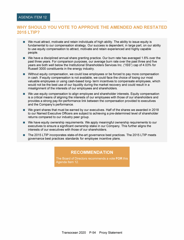 Agenda Item 12. Approval of Amendment and Restatement of the Transocean Ltd. 2015 Long-Term Incentive Plan