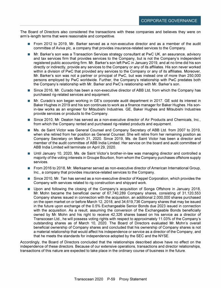 Agenda Item 1. Approval of the 2019 Annual Report, Including the Audited Consolidated Financial Statements of Transocean Ltd. for Fiscal Year 2019 and the Audited Statutory Financial Statements of Transocean Ltd. for Fiscal Year 2019