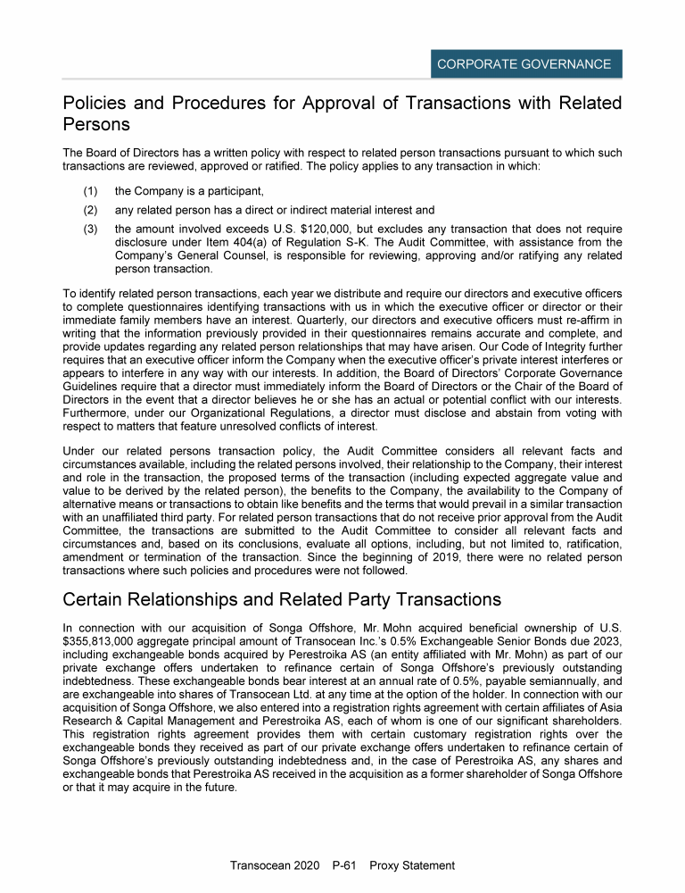 Invitation to 2020 Annual General Meeting of Transocean Ltd.