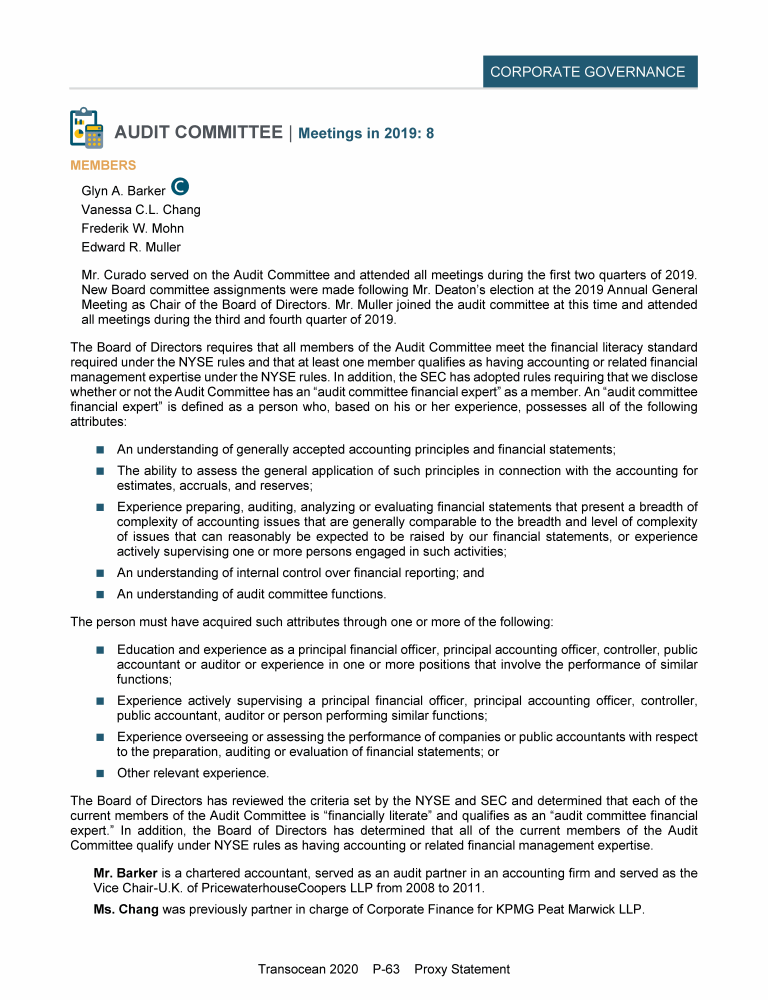 Agenda Item 1. Approval of the 2019 Annual Report, Including the Audited Consolidated Financial Statements of Transocean Ltd. for Fiscal Year 2019 and the Audited Statutory Financial Statements of Transocean Ltd. for Fiscal Year 2019