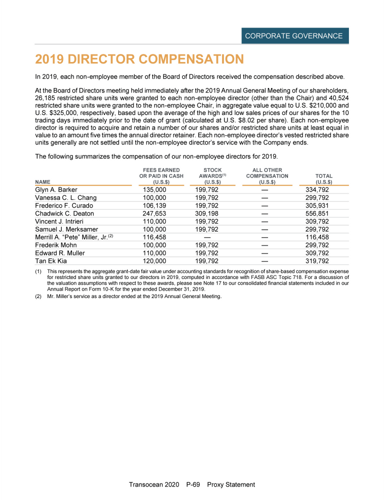 Agenda Item 1. Approval of the 2019 Annual Report, Including the Audited Consolidated Financial Statements of Transocean Ltd. for Fiscal Year 2019 and the Audited Statutory Financial Statements of Transocean Ltd. for Fiscal Year 2019