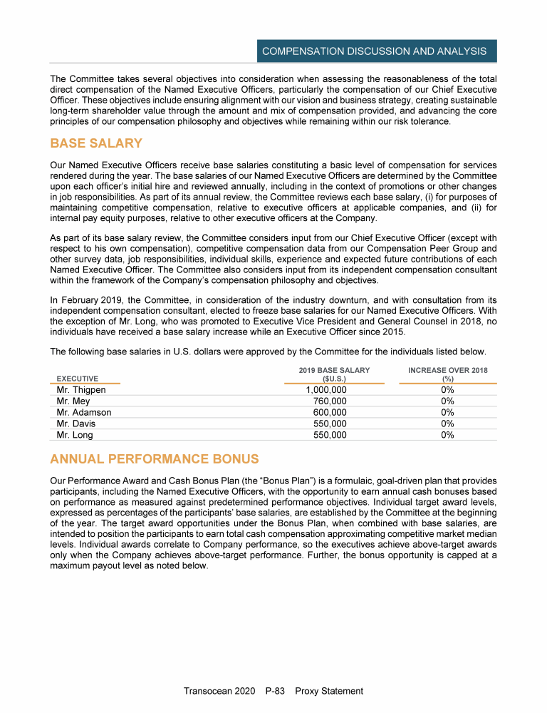 Agenda Item 1. Approval of the 2019 Annual Report, Including the Audited Consolidated Financial Statements of Transocean Ltd. for Fiscal Year 2019 and the Audited Statutory Financial Statements of Transocean Ltd. for Fiscal Year 2019