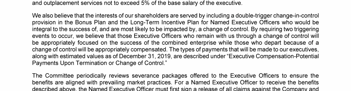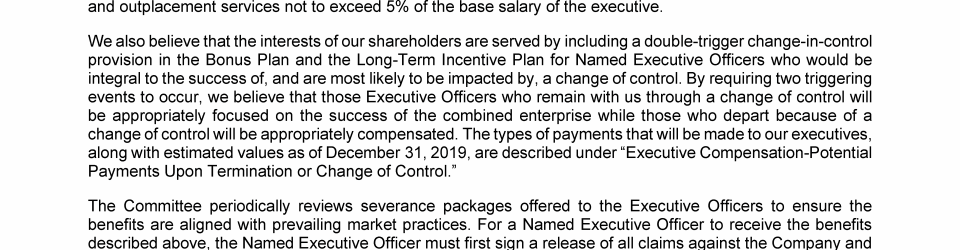 - Potential Payments Upon Termination or Change of Control