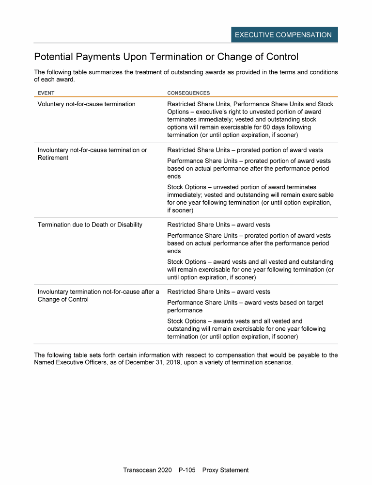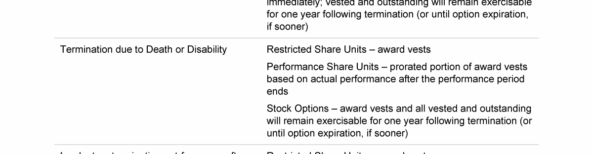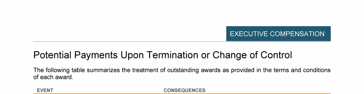- Potential Payments Upon Termination or Change of Control