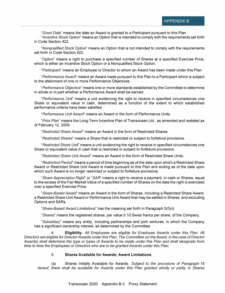 Appendix B - Proposed Amendment and Restatement of Transocean Ltd. 2015 Long-Term Incentive Plan