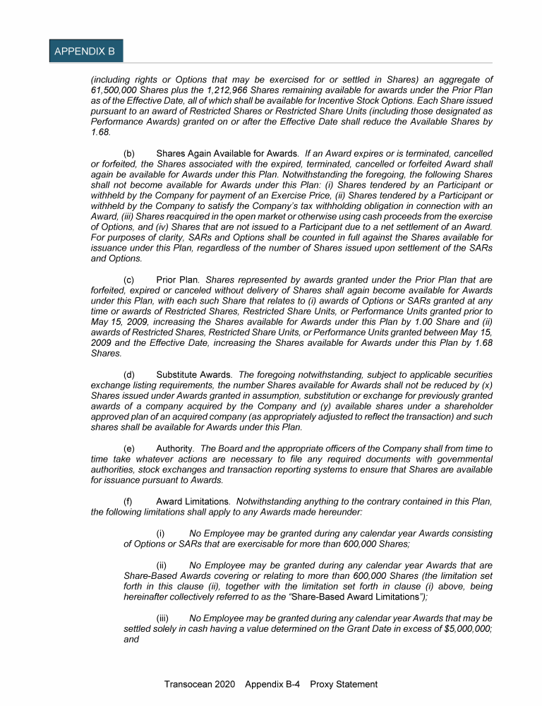 Appendix B - Proposed Amendment and Restatement of Transocean Ltd. 2015 Long-Term Incentive Plan