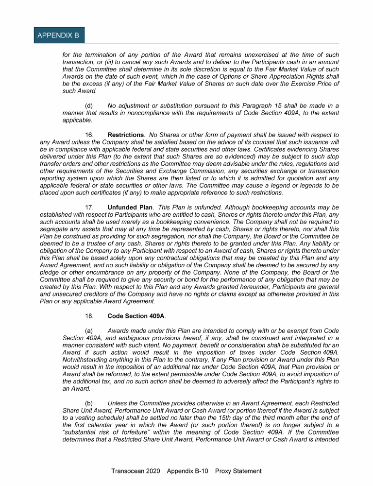 Appendix B - Proposed Amendment and Restatement of Transocean Ltd. 2015 Long-Term Incentive Plan