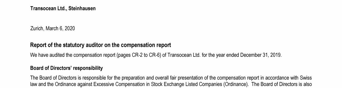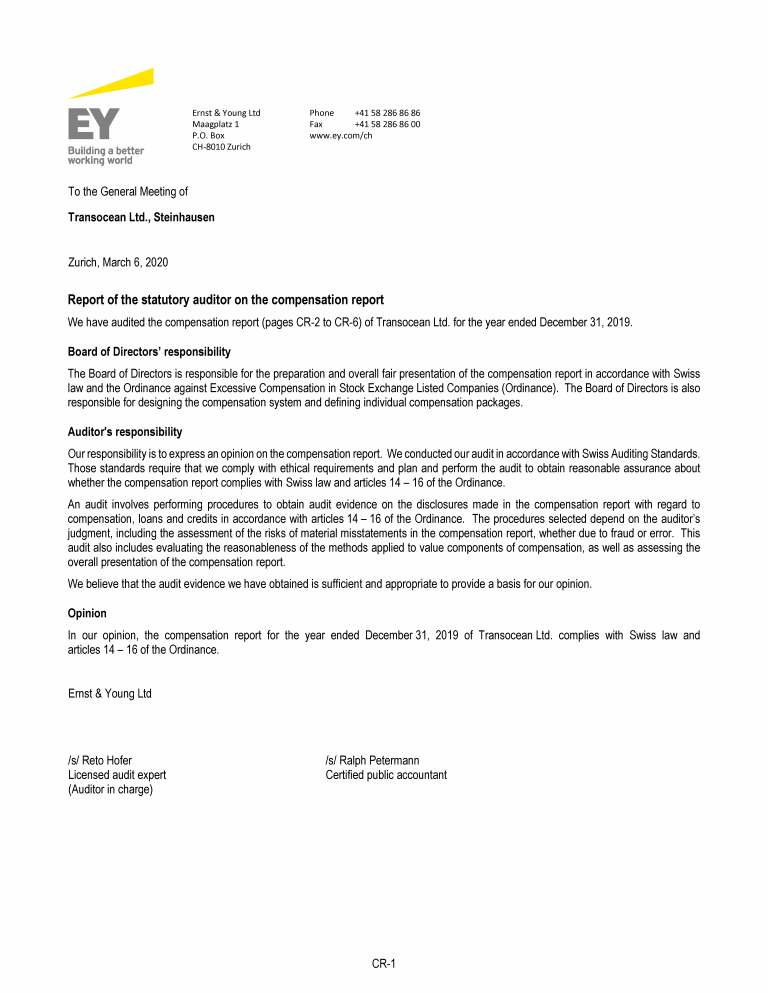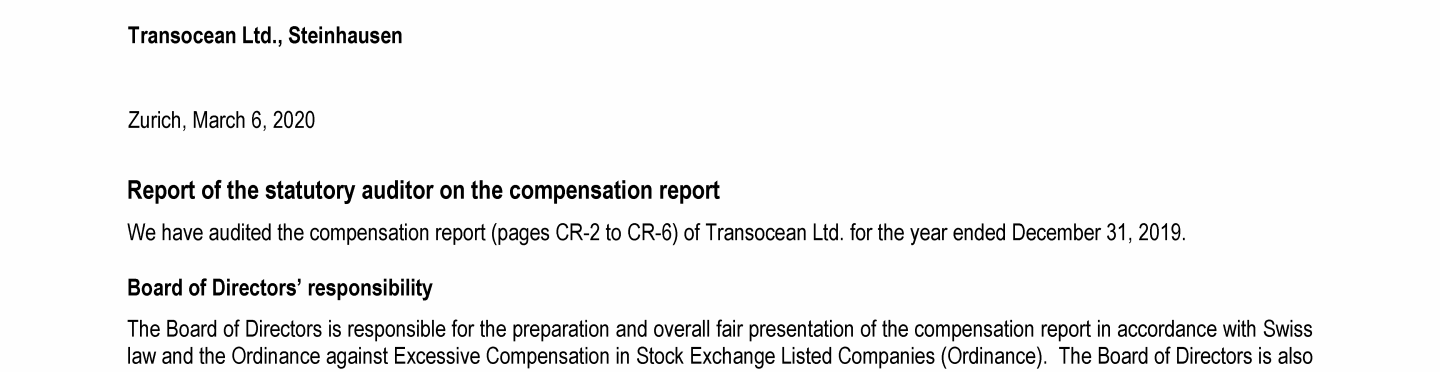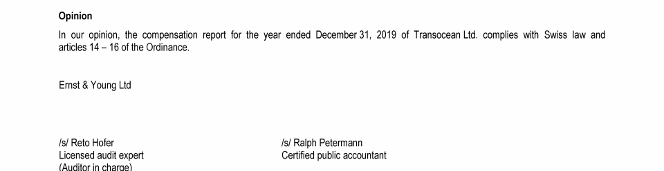 Agenda Item 1. Approval of the 2019 Annual Report, Including the Audited Consolidated Financial Statements of Transocean Ltd. for Fiscal Year 2019 and the Audited Statutory Financial Statements of Transocean Ltd. for Fiscal Year 2019