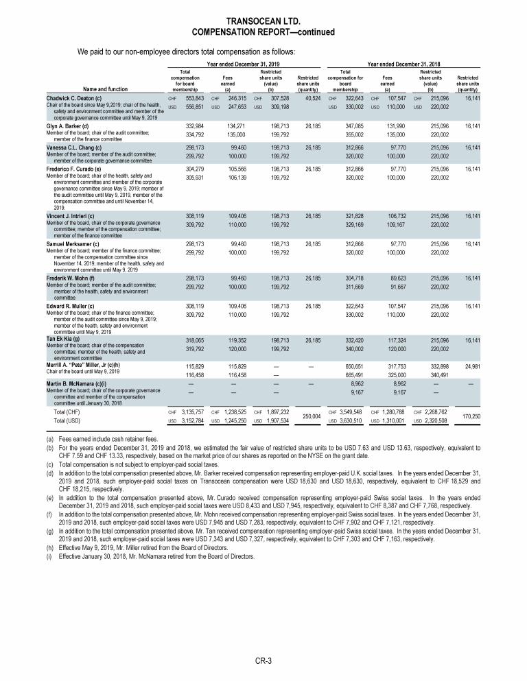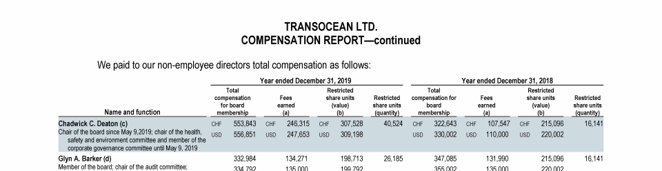 Agenda Item 1. Approval of the 2019 Annual Report, Including the Audited Consolidated Financial Statements of Transocean Ltd. for Fiscal Year 2019 and the Audited Statutory Financial Statements of Transocean Ltd. for Fiscal Year 2019