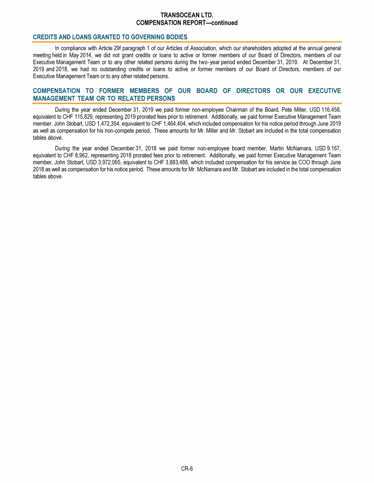 Agenda Item 1. Approval of the 2019 Annual Report, Including the Audited Consolidated Financial Statements of Transocean Ltd. for Fiscal Year 2019 and the Audited Statutory Financial Statements of Transocean Ltd. for Fiscal Year 2019