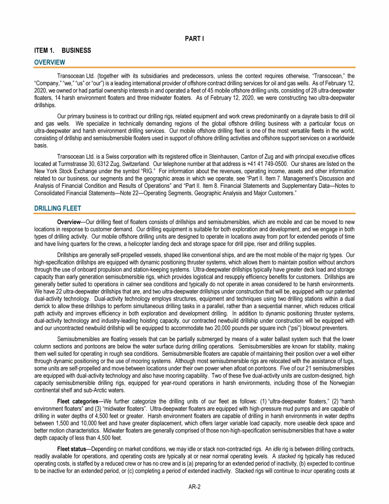 Agenda Item 1. Approval of the 2019 Annual Report, Including the Audited Consolidated Financial Statements of Transocean Ltd. for Fiscal Year 2019 and the Audited Statutory Financial Statements of Transocean Ltd. for Fiscal Year 2019